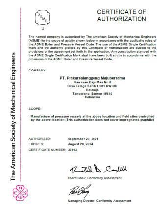 MAJU BERSAMA is certified to ASME U, ISO 9001:2015, ISO 14001:2015, and ISO 45001:2018. To maintain our competitive edge, we continuously invest in technology, advanced machinery, and highly skilled project management teams.